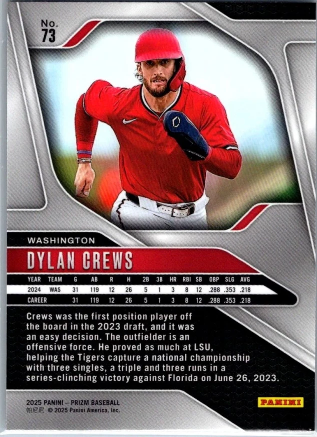 This is a nice example of a 2025 Panini Prizm #73 Dylan Crews