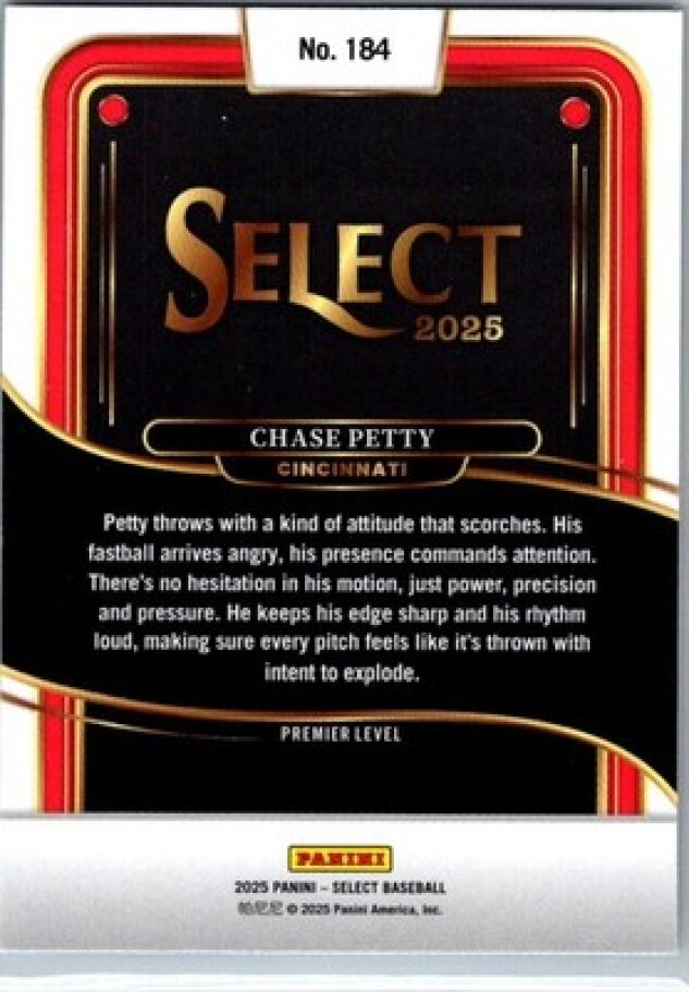 This is a nice example of a 2025 Panini Select #184 Chase Petty
