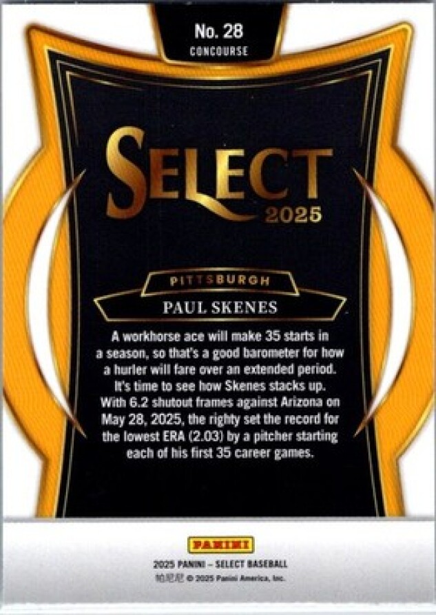 This is a nice example of a 2025 Panini Select #28 Paul Skenes