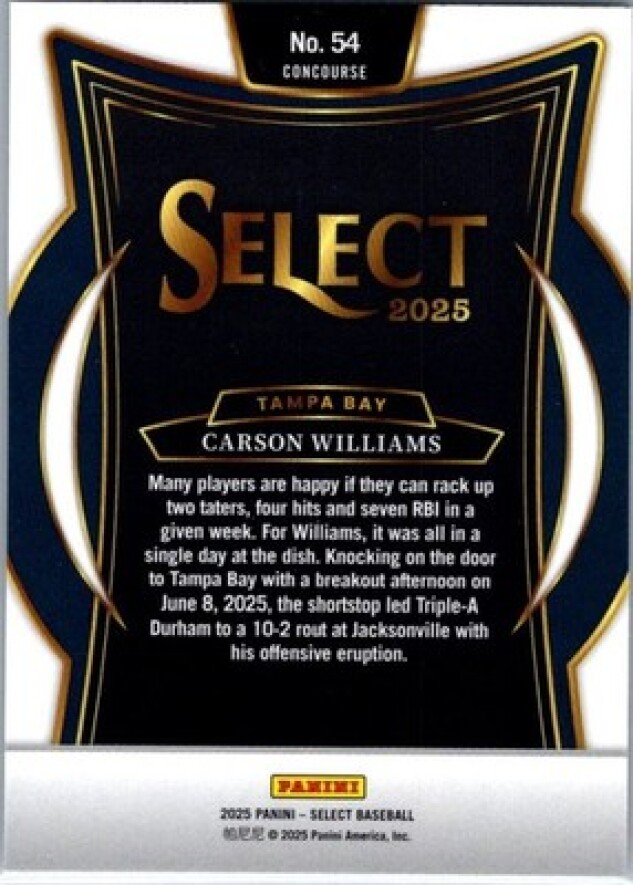 In 2025 Carson Williams played for the Tampa Bay Rays.