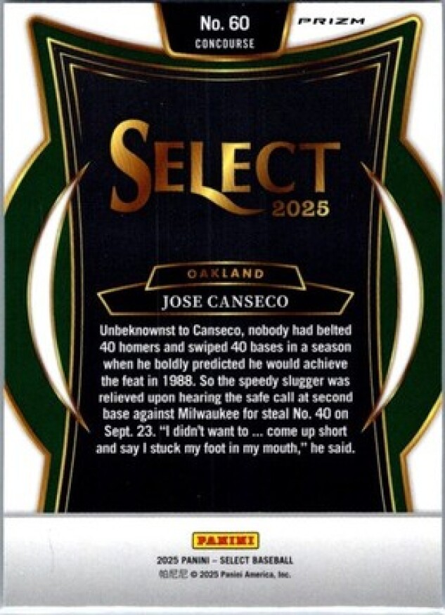 2025 Panini Select #60 Jose Canseco Silver Prizms