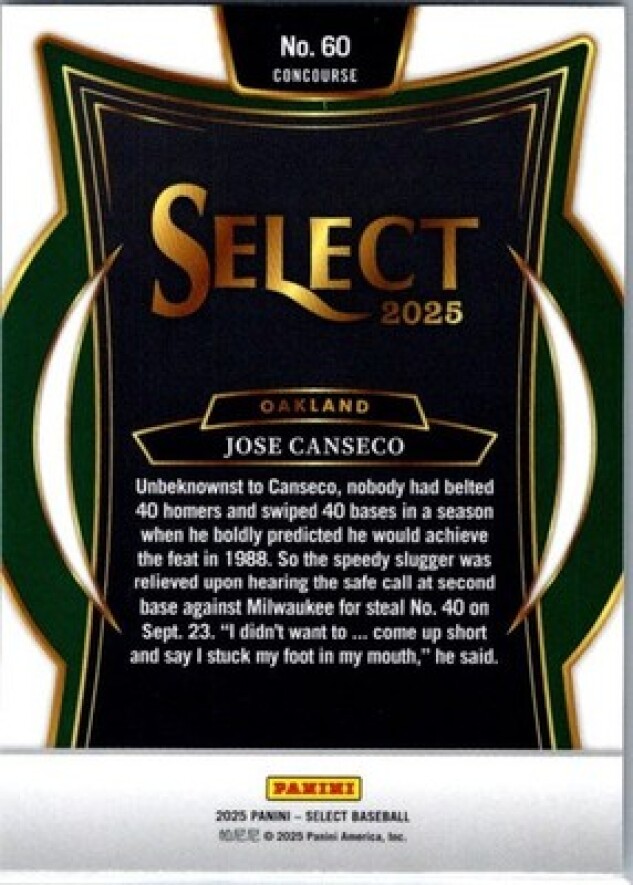 2025 Panini Select #60 Jose Canseco