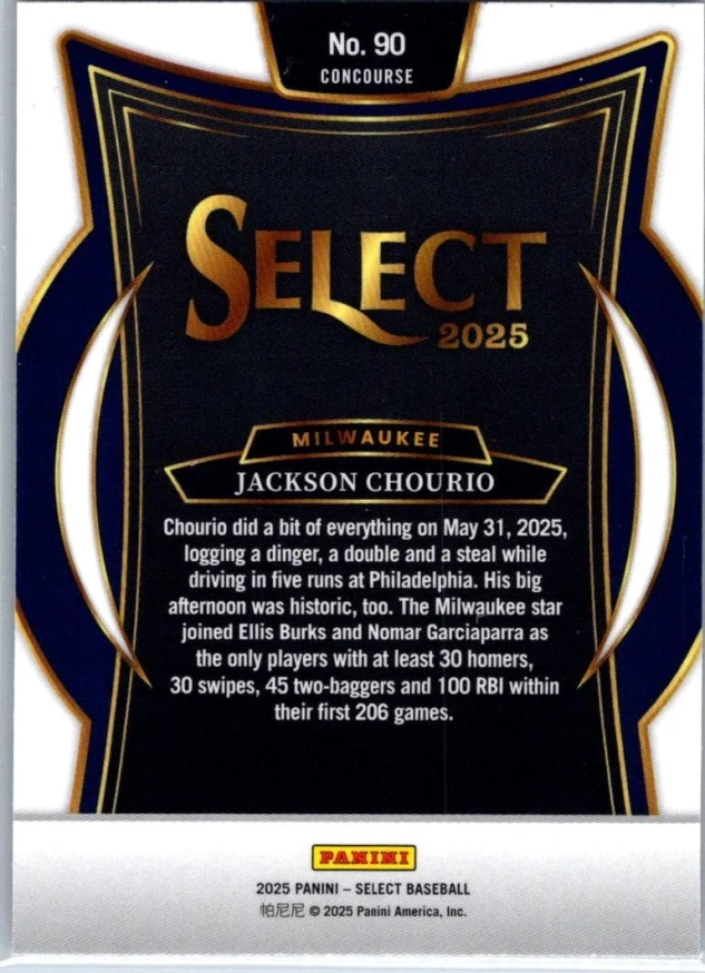 This is a nice example of a 2025 Panini Select #90 Jackson Chourio