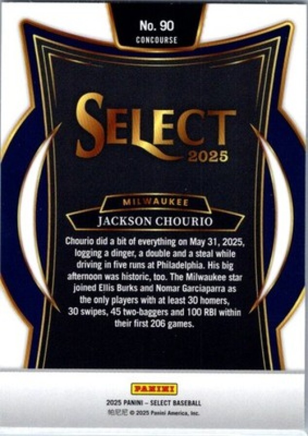 This is a nice example of a 2025 Panini Select #90 Jackson Chourio