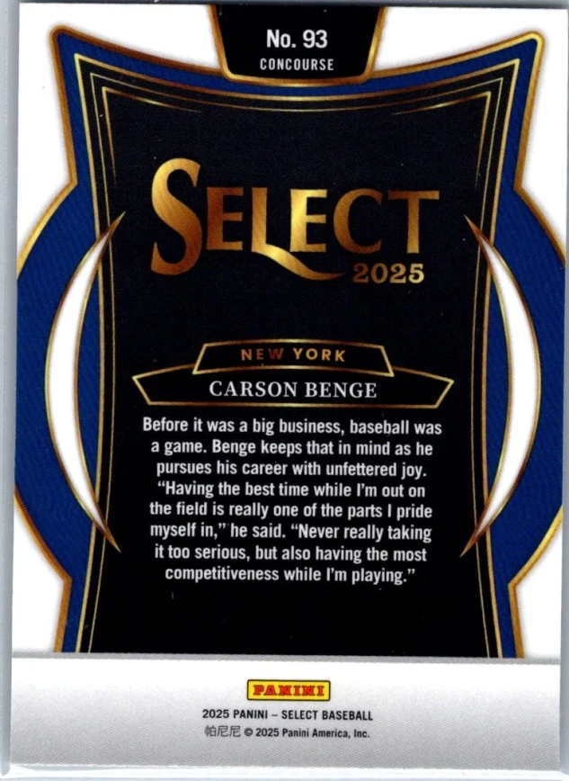 This is a nice example of a 2025 Panini Select #93 Carson Benge