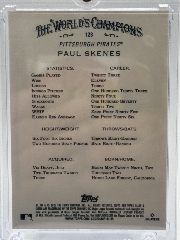 2025 Topps Allen & Ginter #128 Paul Skenes Foil Filagree Orange # 23/25
