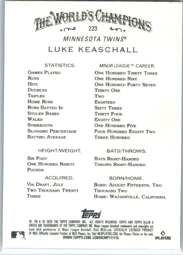 In 2025 Luke Keaschall played for the Minnesota Twins.