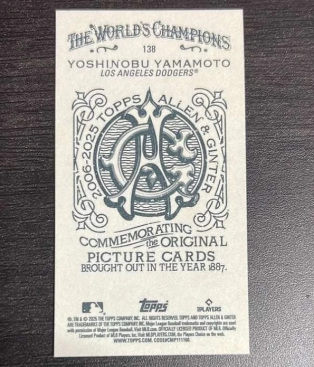 This is a nice example of a 2025 Topps Allen & Ginter - Mini Allen & Ginter Back #138 Yoshinobu Yamamoto