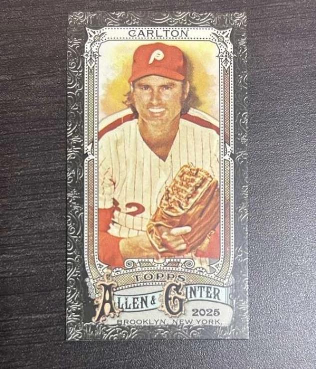 This is a nice example of a 2025 Topps Allen & Ginter - Mini Black Border #38 Steve Carlton