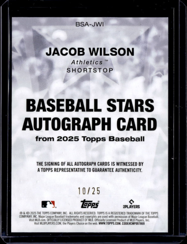 2025 TOPPS BASEBALL STARS AUTOGRAPH ORANGE #BSA-HWI JACOB WILSON RC (10/25)