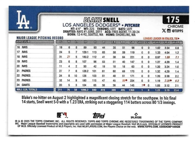 2025 TOPPS CHROME #175 BLAKE SNELL