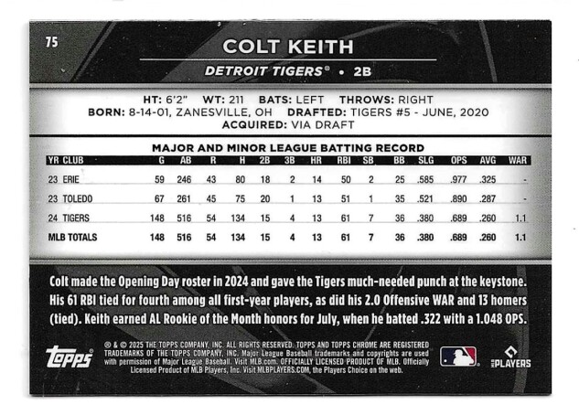 2025 TOPPS CHROME BLACK #75 COLT KEITH