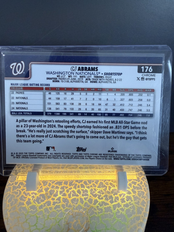 2025 Topps Chrome - CJ Abram’s - Aqua /299 - #176