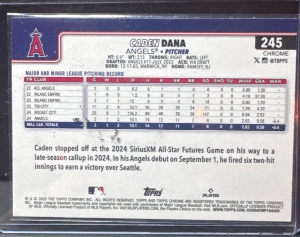 2025 Topps Chrome Logo Fractor - Caden Dana #245 Aqua Refractor /199 (RC)
