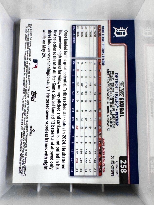 You are purchasing a 2025 Topps Chrome Tarik Skubal #258. You will receive the exact item in the photographs. Thank you for looking.