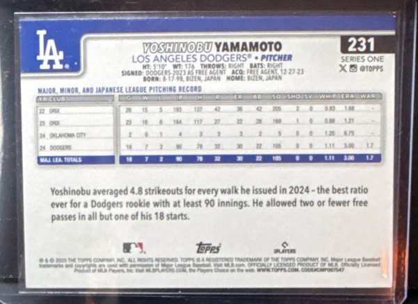 2025 Topps Chrome Yoshinobu Yamamoto 231 Series 1 Rookie RC
