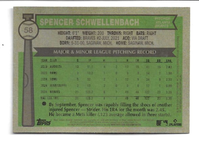 2025 TOPPS HERITAGE CHROME #58 SPENCER SCHWELLENBACH (RC)