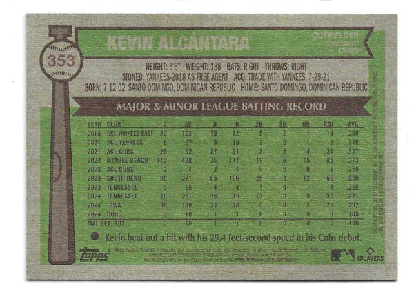 2025 TOPPS HERITAGE GREEN BORDER #353 KEVIN ALCNATARA (RC)