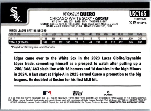 In 2025 Edgar Quero played for the Chicago White Sox.