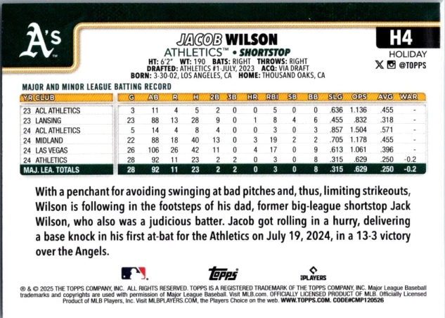 In 2025 Jacob Wilson played for the Athletics.