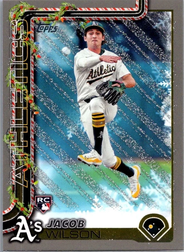 This is a nice example of a 2025 Topps Holiday #H4 Jacob Wilson Silver Glitter Holiday