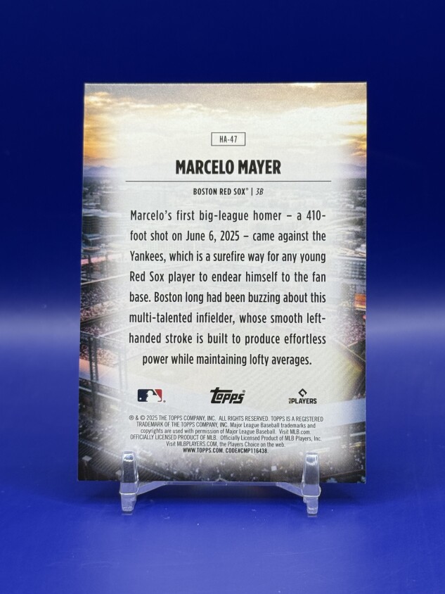 Don't miss your chance to own this stunning 2025 Topps Marcelo Mayer Home Field Advantage SSP rookie card, featuring the highly sought-after case hit parallel! This RC showcases Mayer in his Boston Red Sox uniform, making it a must-have for serious collectors and Red Sox fans looking to add value and excitement to their collection.