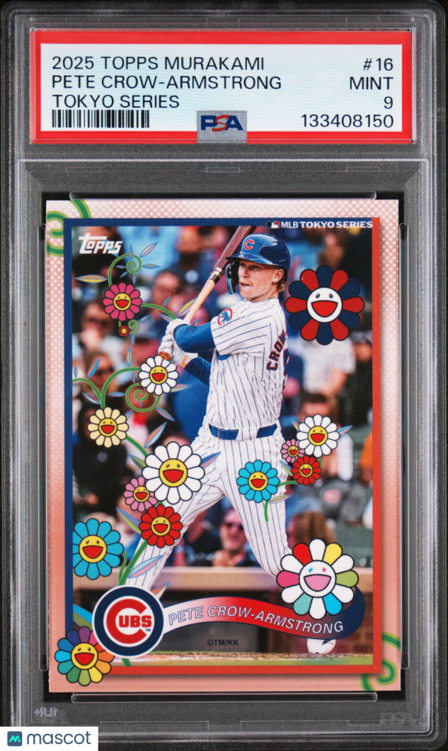 Don’t miss your chance to add this standout 2025 Topps Takashi Murakami + MLB World Tour Tokyo Series Pete Crow-Armstrong #16 to your collection! Professionally graded PSA 9, this card boasts impressive eye appeal and is a must-have for Chicago Cubs fans and collectors of rising MLB stars. With only 187 in the population and just 341 graded higher, this card is a rare find that’s sure to gain value over time.