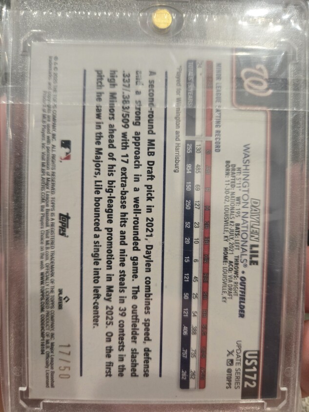 2025 Topps Series 1 Daylen Lile Gold Foil Rookie /50
