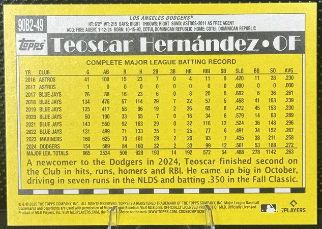 2025 Topps Series 2 Teoscar Hernandez #90B2-49 35th Anniversary