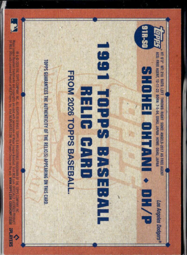 2026 TOPPS 1991 BASEBALL RELIC BLUE #91R-SO SHOHEI OHTANI (022/150)