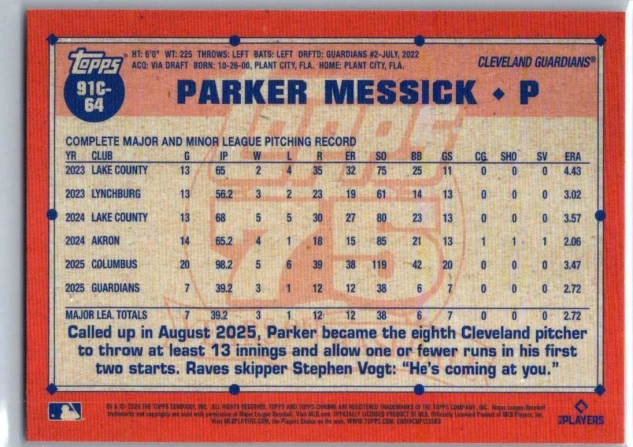 In 2026 Parker Messick played for the Cleveland Guardians.