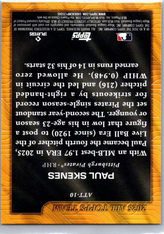 This is a nice example of a 2026 Topps #ATT-10 Paul Skenes 2025 All Topps Team