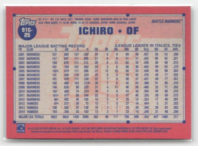You are purchasing a 2026 Topps Ichiro #91C-25 1991 Topps Baseball 35th Anniversary Chrome (Series One) HOF SILVER PACK. You will receive the exact item in the photographs. Thank you for looking.