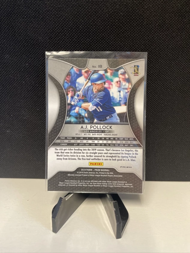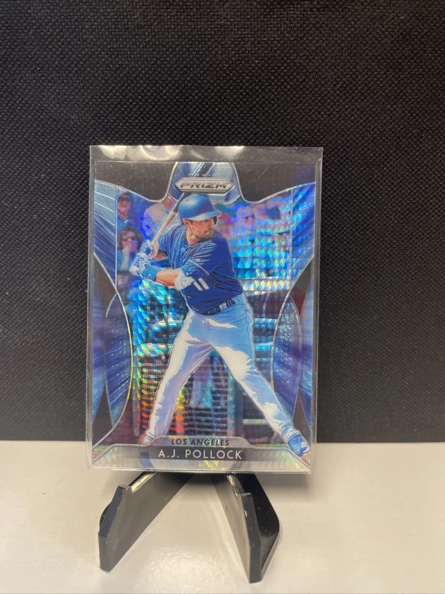 This A.J. Pollock 2019 Panini Prizm #18 Hyper Prizm sports trading card is a must-have for Los Angeles Dodgers fans and baseball enthusiasts alike. Made of high-quality card stock, this original card features a unique Hyper Prizm design that sets it apart from other trading cards.