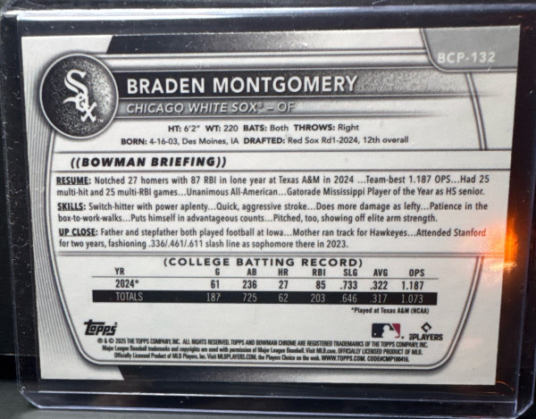 Braden Montgomery 2025 Bowman Chrome Prospects Reptilian Refractor #BCP-132