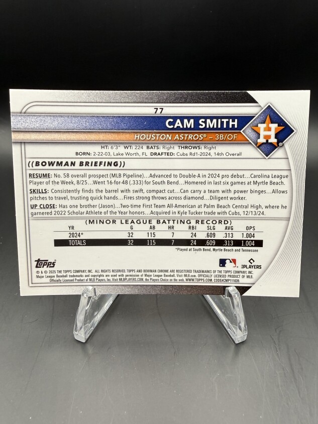 Cam Smith (Astros) 2025 Bowman Chrome Refractor RC #77