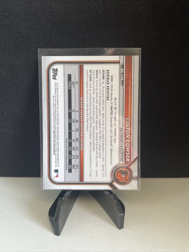 The card is an original and not a licensed reprint. It's a base set card with a base parallel/variety and card number BD-149. It was manufactured by Topps in the United States and is not considered vintage. Whether you're a collector or just a fan of the sport, this Colton Cowser card is a great addition to any baseball memorabilia.