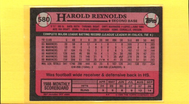 Harold Reynolds #580 1989 Topps