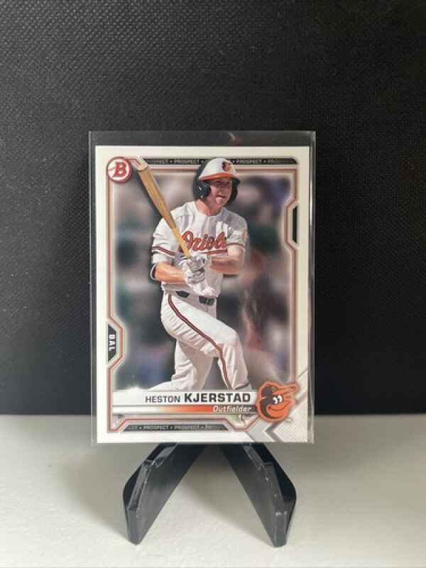 This Heston Kjerstad 2021 Bowman Prospects card is a must-have for any avid collector. It features the player in his Baltimore Orioles uniform, with his name and team clearly displayed. The card is made of high-quality card stock and is an original piece, not a reprint.