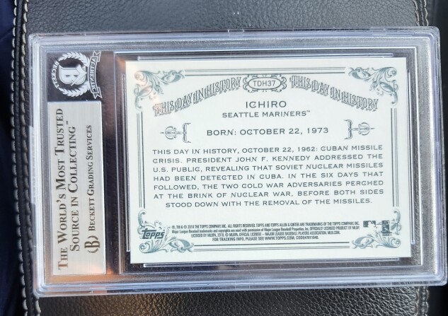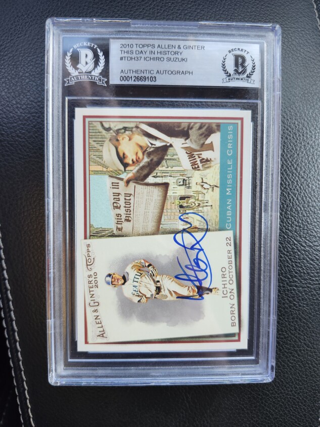 2010 TOPPS ALLEN AND GINTER ICHIRO SUZUKI THIS DAY IN HISTORY ON CARD AUTO. BGS AUTHENTIC.