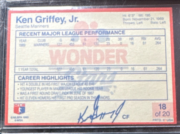 KEN GRIFFEY JR 1990 Wonder Bread Stars #18 Seattle Mariners HOF!