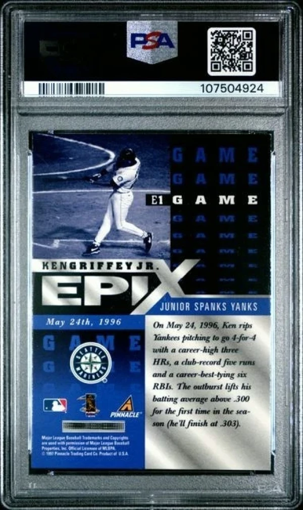 Ken Griffey Jr. 1998 Pinnacle Epix #E1 Game Purple Pop 11 PSA 9