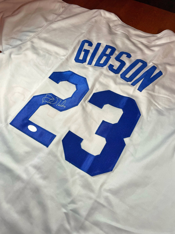 This is (1) KIRK GIBSON Signed Autographed Custom Baseball Jersey Dodgers JSA Auto.