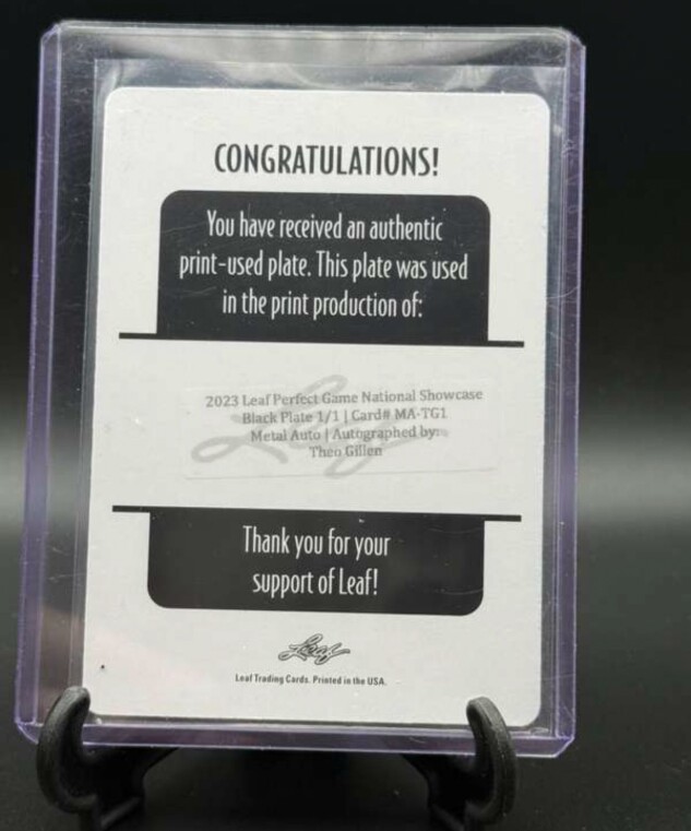MA-TG1 Theo Gillen 2023 Leaf Metal Perfect Game Marble - Base Auto Black #/1