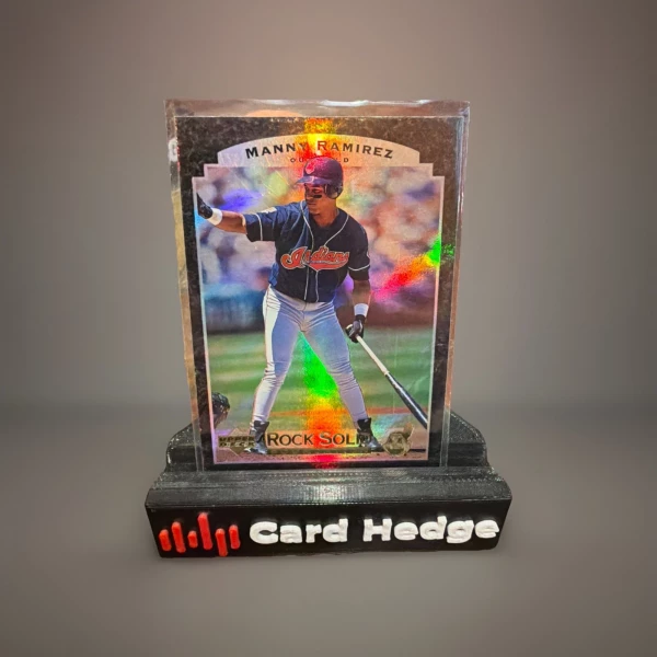 The product is a 1997 Upper Deck Rock Solid #RS10 trading card featuring Major League Baseball player Manny Ramirez. This original card is made of card stock and is part of the 1997 Upper Deck set. It is a standard size sports trading card with English text and is not autographed. The card showcases Ramirez during his time with the Cleveland Guardians in the 1997 season. It is a valuable collectible for baseball fans and card enthusiasts.