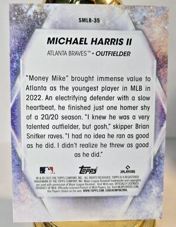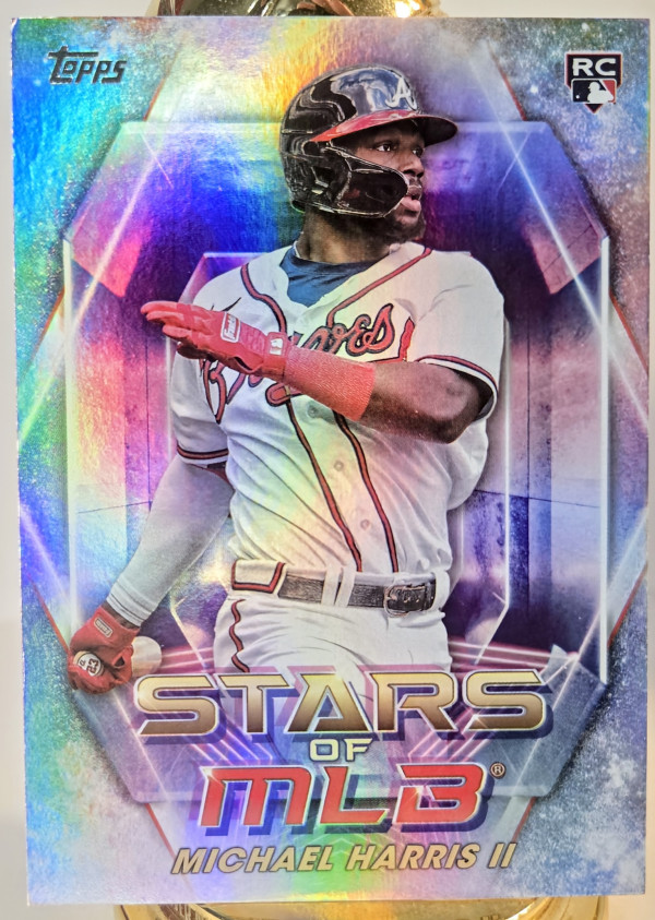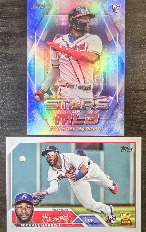 The product is a set of two 2023 Topps Series 2 baseball trading cards featuring Michael Harris II, who is a rookie for the Atlanta Braves in Major League Baseball. These cards are part of the Stars of MLB series and are manufactured by Topps. As an insert card, it offers collectors and fans a special addition to their collection, highlighting the promising talent of the young player.