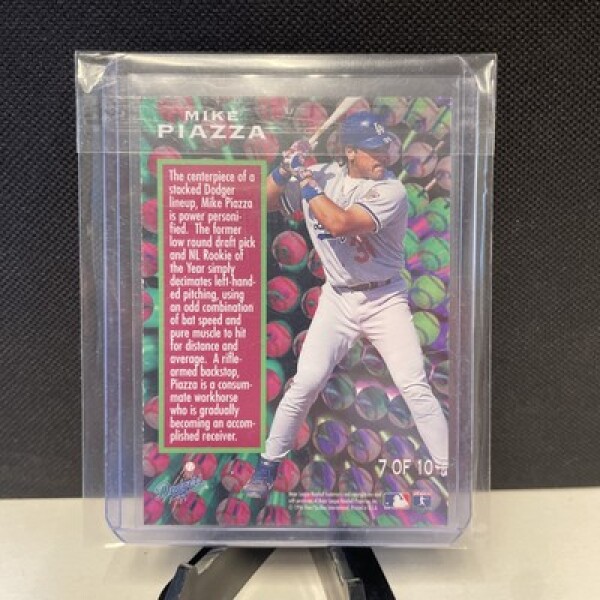 Capture a piece of baseball history with the Mike Piazza 1996 Fleer Soaring Star #7 card. This collectible features the renowned Los Angeles Dodgers player, commemorating his impact on the sport during the memorable '96 season. As part of the Fleer set, this card boasts the classic Soaring Star insert design, a must-have for fans and collectors alike.
