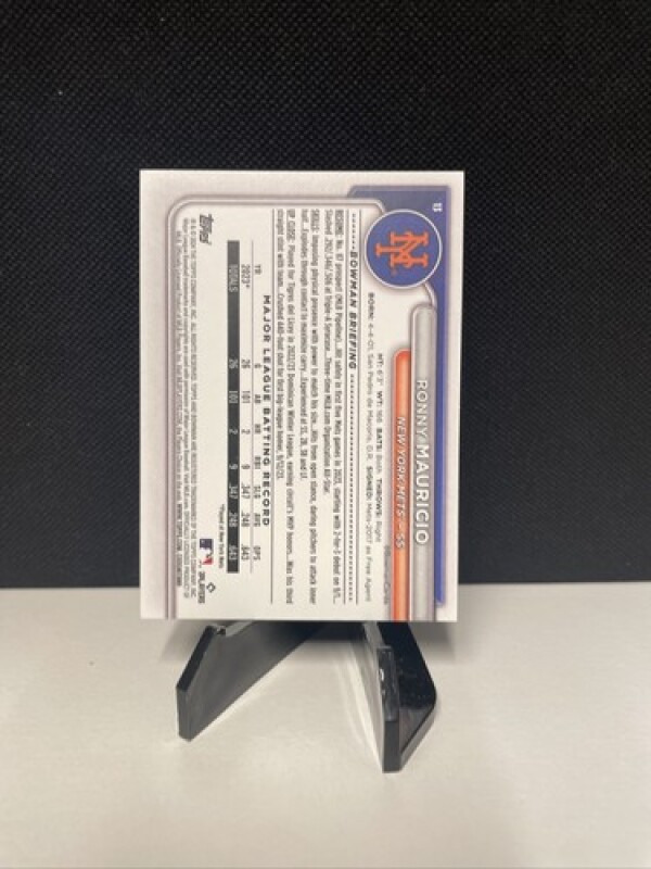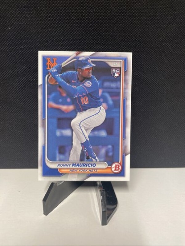 This is a 2024 Bowman sports trading card featuring Ronny Mauricio, a rookie player for the New York Mets in Major League Baseball. The card is made of card stock material and is an original, not a licensed reprint. It is a base parallel variety with card number 13 and is part of the 2024 set.