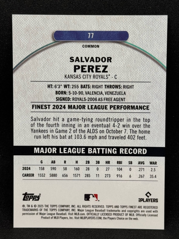 Salvador Perez 2025 Topps Finest #77 Pearl X-Fractor 58/60 - Royals