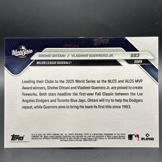 World Series 2025 Topps Now card. #893 in the Topps Now Archives. "NLCS and ALCS MVPs headline 1st World Series between clubs."